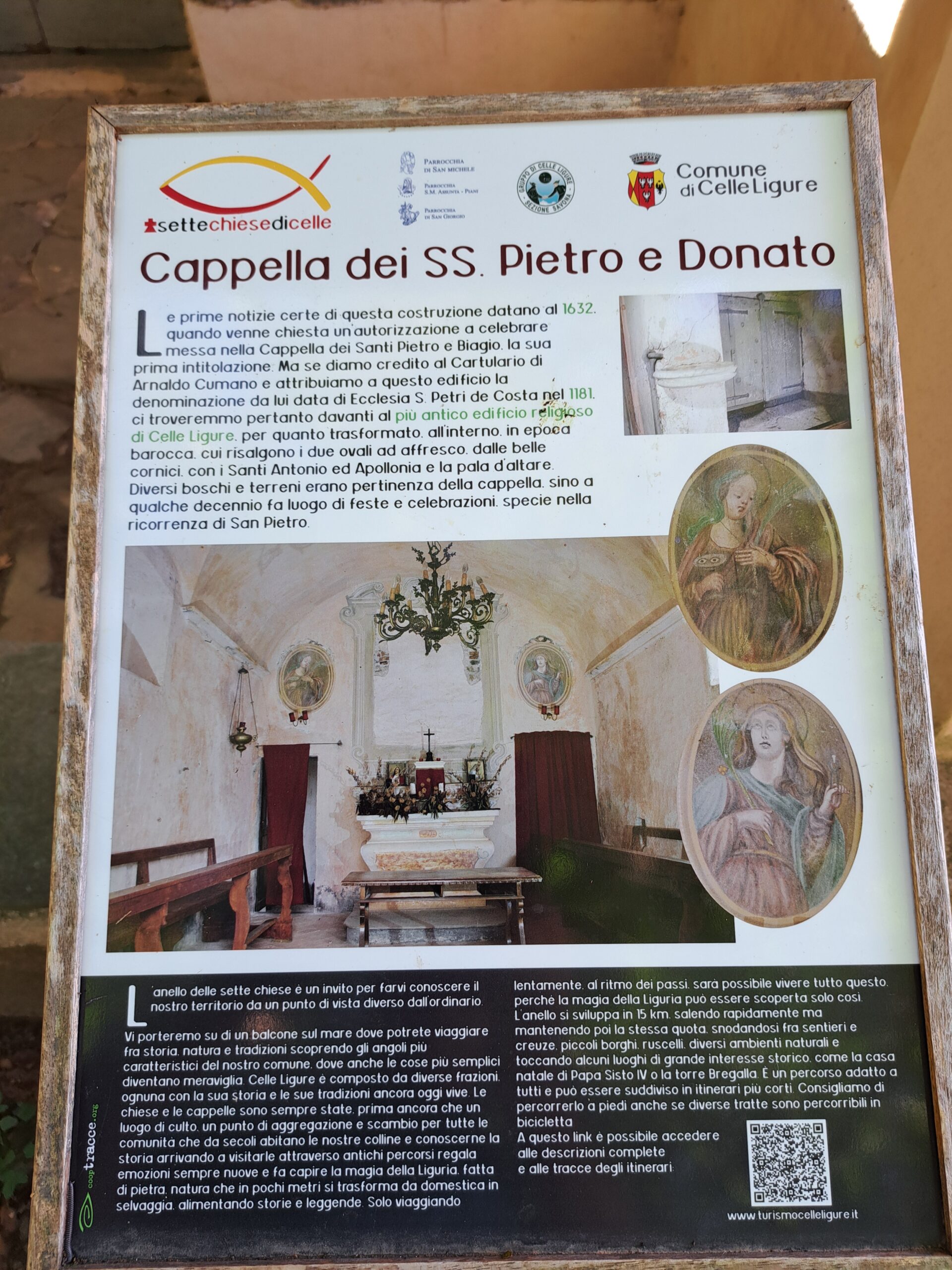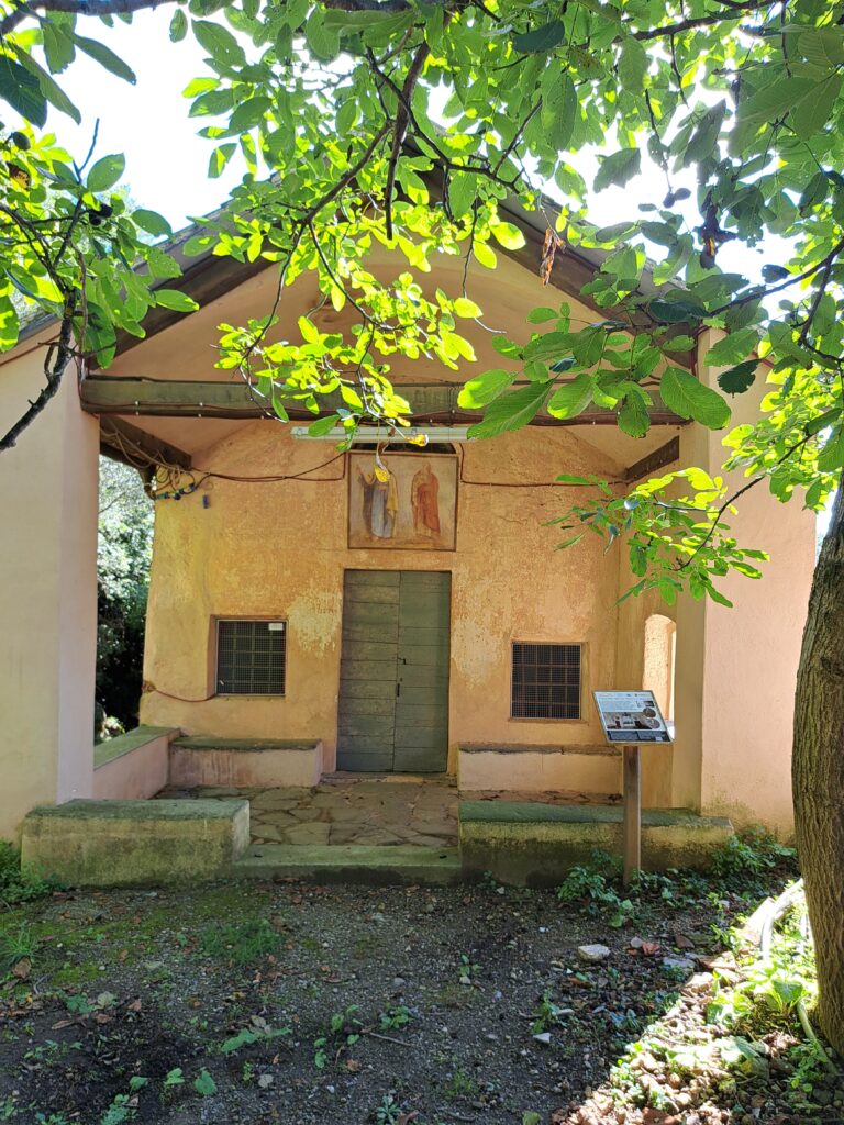 Dalla Chiesa di San Lorenzo e Sant’Antonio Abate si prosegue verso la Chiesa dei SS Pietro e Donato posta a fianco di una mulattiera e nascosta nel bosco.