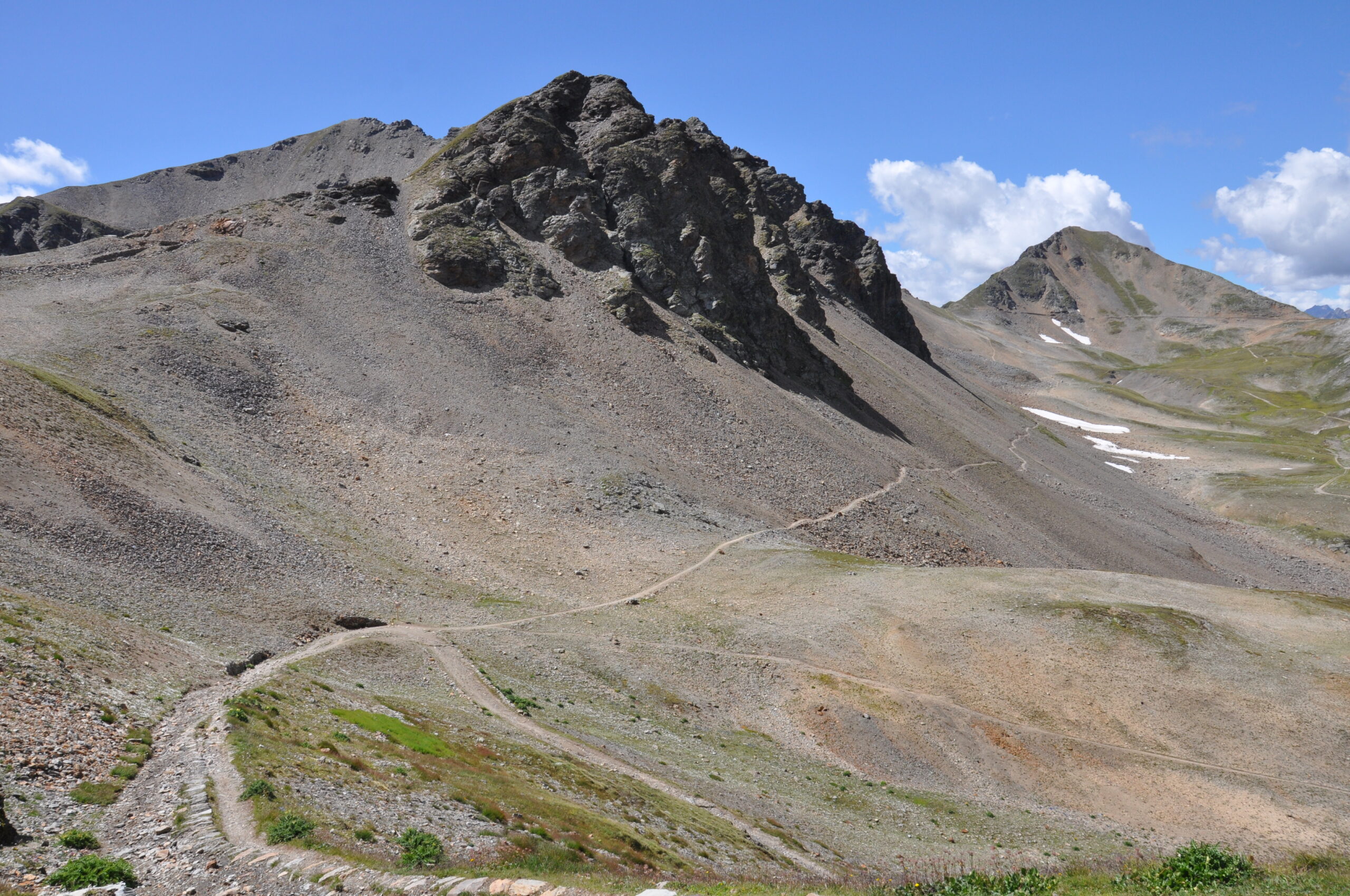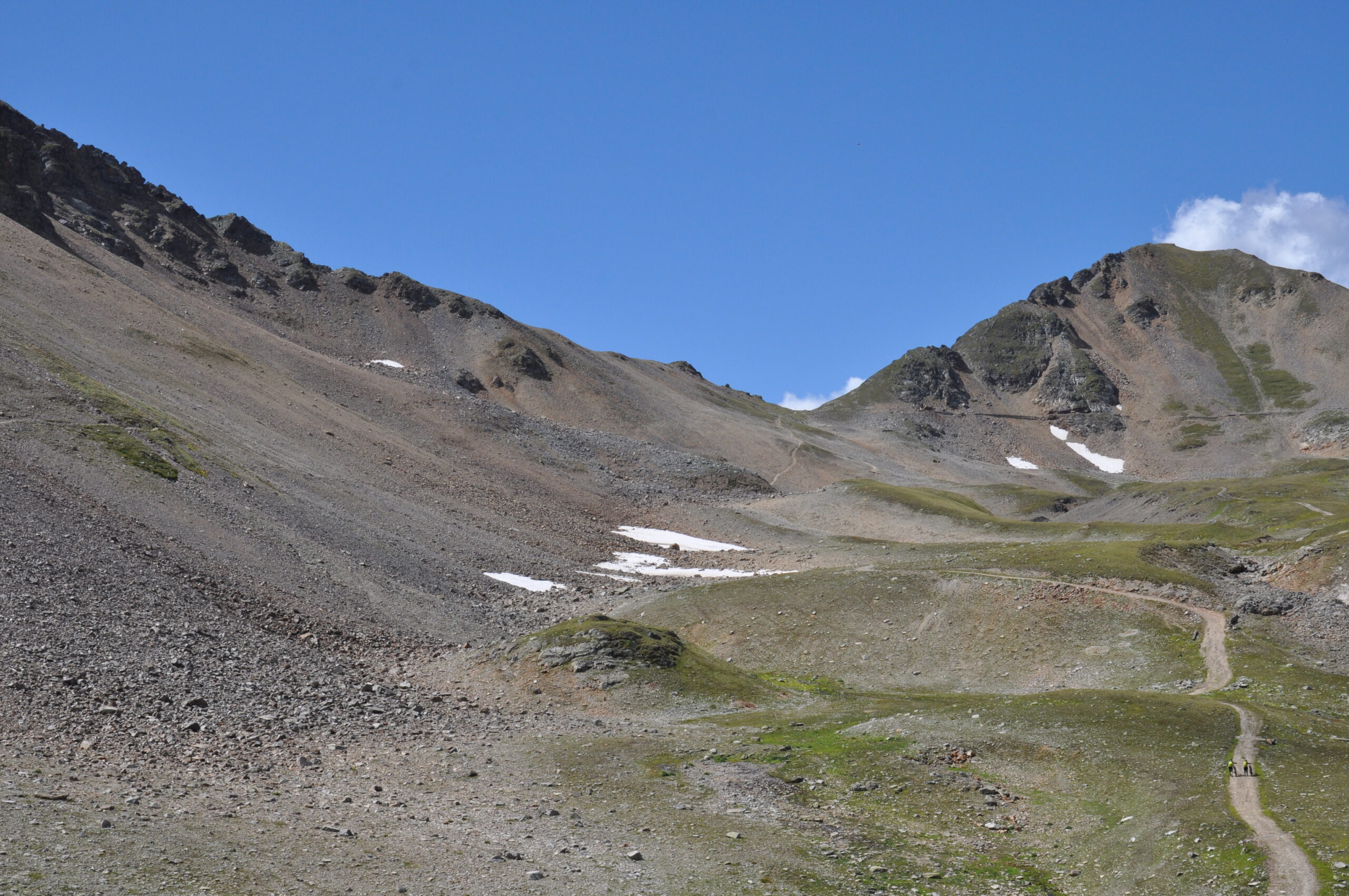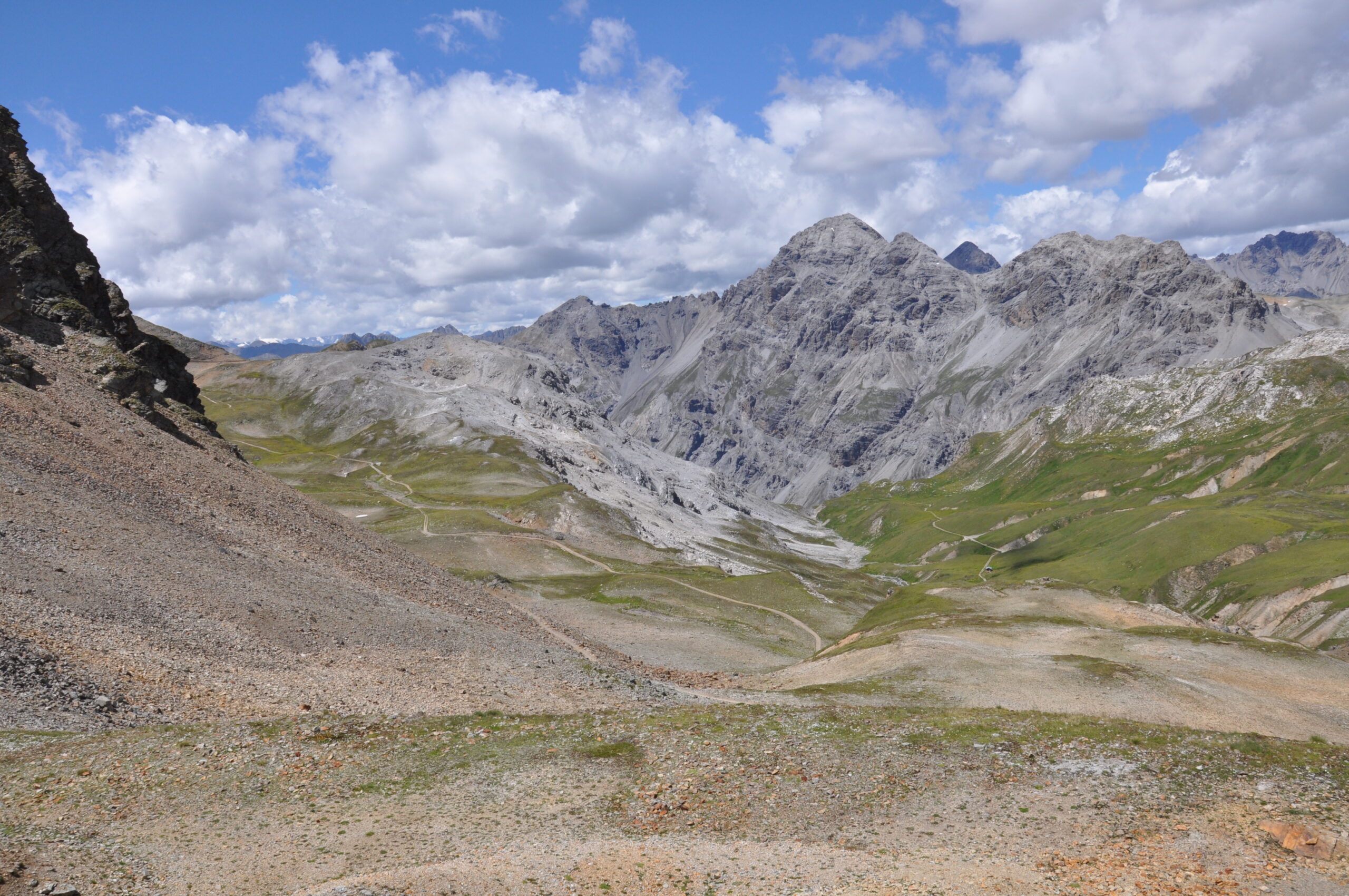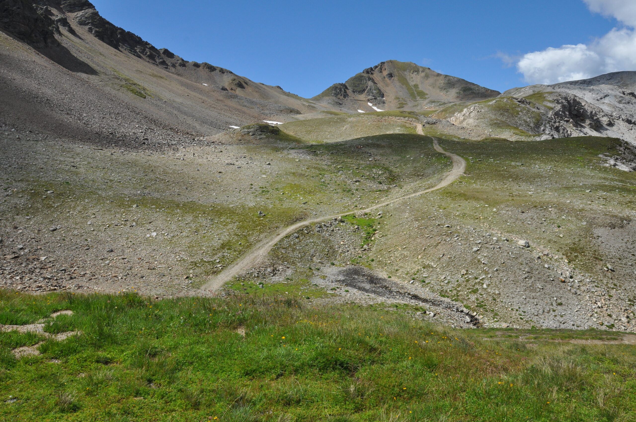 Dopo aver toccato le Bocchette di Pedenoletto e Pedenolo, ci affacciamo sui Piani di Pedenolo, la lunga mulattiera che li percorre, fino a raggiungere il sentiero che scende di nuovo in Val Forcola, raggiungendo la mulattiera alla prima deviazione che avevamo lasciato sulla destra salendo. Il sentiero che dai Piani di Pedenolo scende in Val Forcola non è difficile ma richiede attenzione e, si vede dalle foto, passo fermo (non so chi lo fa in bicicletta come faccia!)