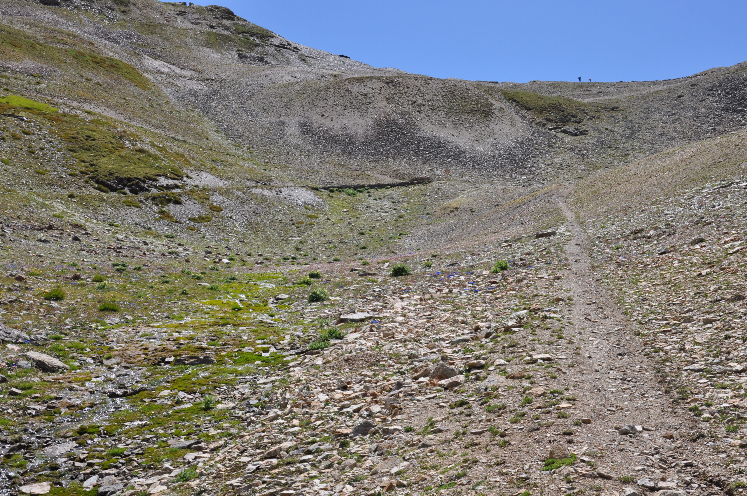 Il percorso, pur restando una mulattiera, diventa sempre piú ripido. Si arriva in vista della Bocchetta di Forcola, osservando sulla destra la traccia che dalla Bocchetta di Forcola raggiunge la Bocchetta di Pedenoletto.